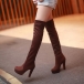 Long Stretchy Frosted Over the Knee High Heel Platform Boots