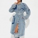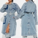 Loose Belted Long Double Breasted Denim Trench Coat