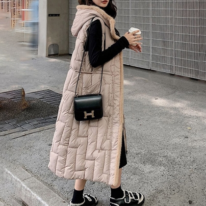 Loose Casual Oversized Cotton Outwear Plush Thickened Hooded Vest