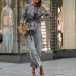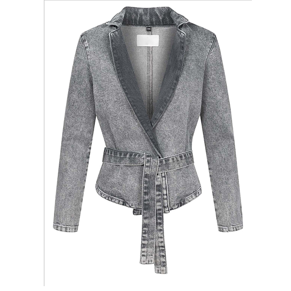 Fashion Old-washed Denim Two-piece Set Consist of Self-tie Denim Jacket and Denim Pants