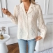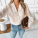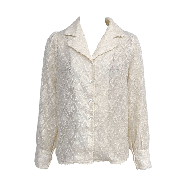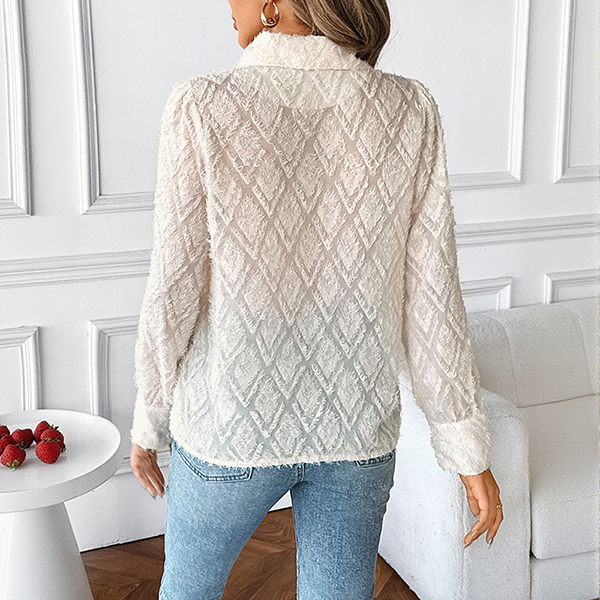 Women's Notch Lapel Long Sleeve Front Button Textured Fuzzy Blouse