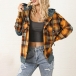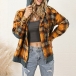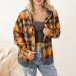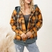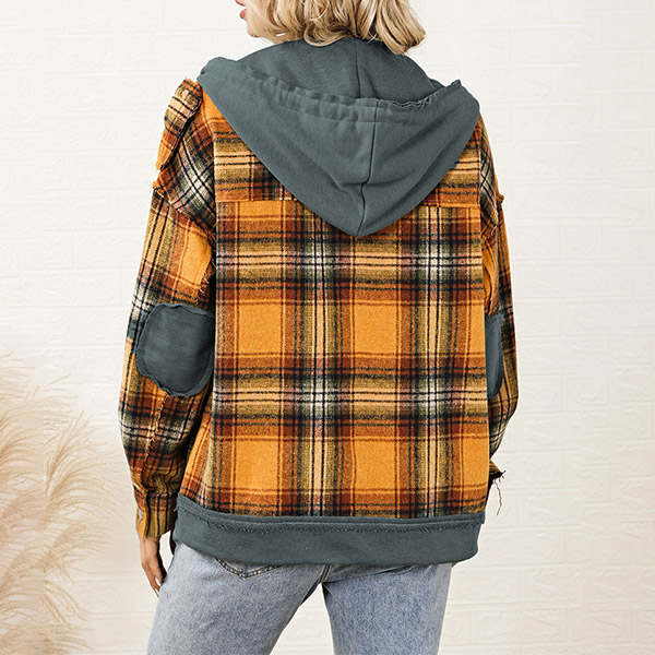 Loose Fit Plaid Patch Frayed Edge Hooded Jacket
