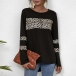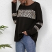 Loose Round Neck Leopard Printed Spliced Long Sleeve Top