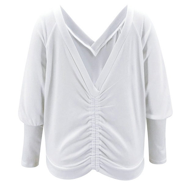 V-neck top is a kind of collar type that is so popular in fashion circle. It is suitable for all kinds of face shapes. Designed with solid color and long sleeve, finished with V-neck, backless and drawstring, which can modify your lines of face and neck and makes you look fashionable, this piece is the one you are looking for.