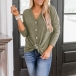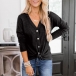 Loose Solid Color V-neck Long Sleeve Knitted Top