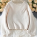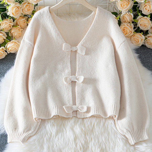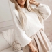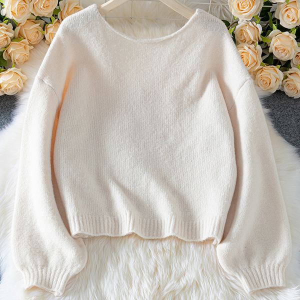 Fashion Crew Neck Long Sleeve Backless Bowknot Loose Sweater