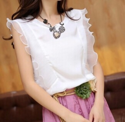 Lotus leaf edge stitching short sleeve chiffon unlined upper garment