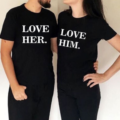 Made from soft and breathable material, this T-shirt will offer you and your lover a plesant day. Printed letter'Love Her''Love him' make this T-shirt more meaningful and express your love to your lover. It is a ideal gift for him or her. With this T-shirt to enjoy a sweet time with your lover.
