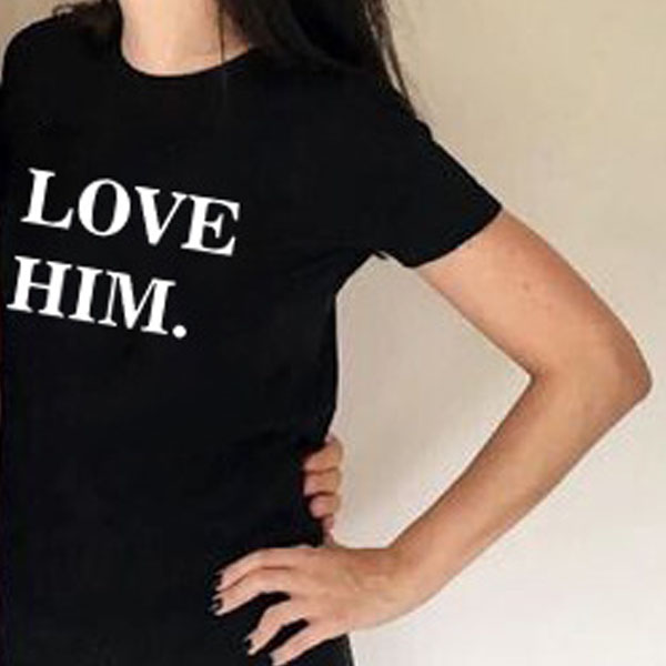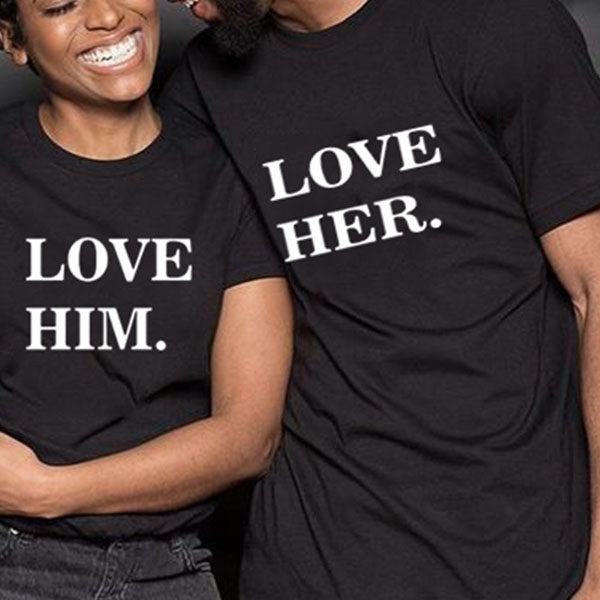 LOVE HIM, LOVE HER-Couple Shirt-Black Casual Printed Couple T-shirt