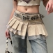 Low-Waist Mesh Panel Asymmetric Button-Front Skirt