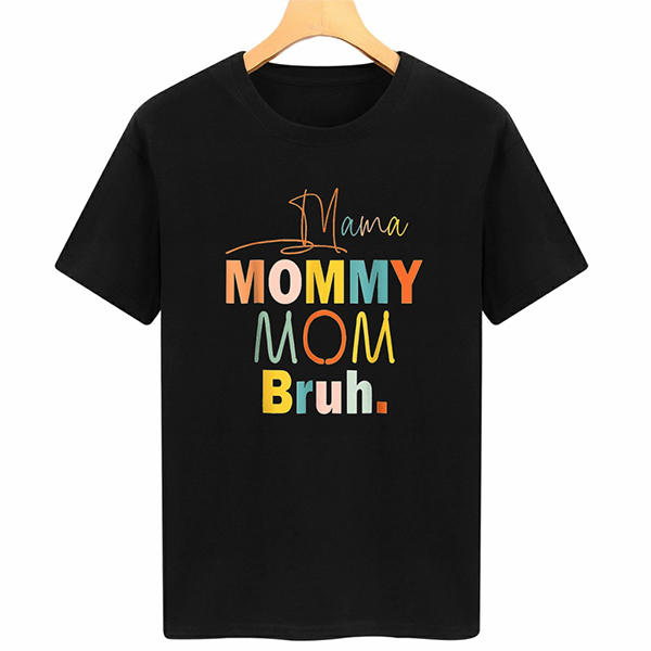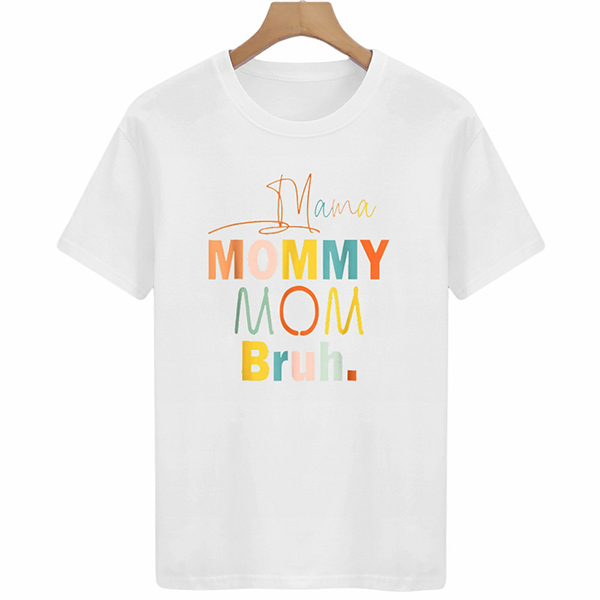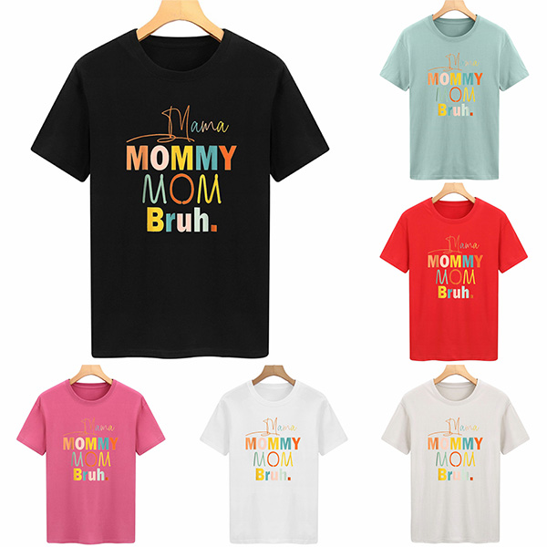 Mama mommy mom bruh-Printed Round Neck Short Sleeve Shirt