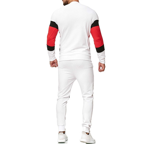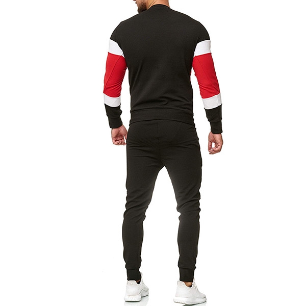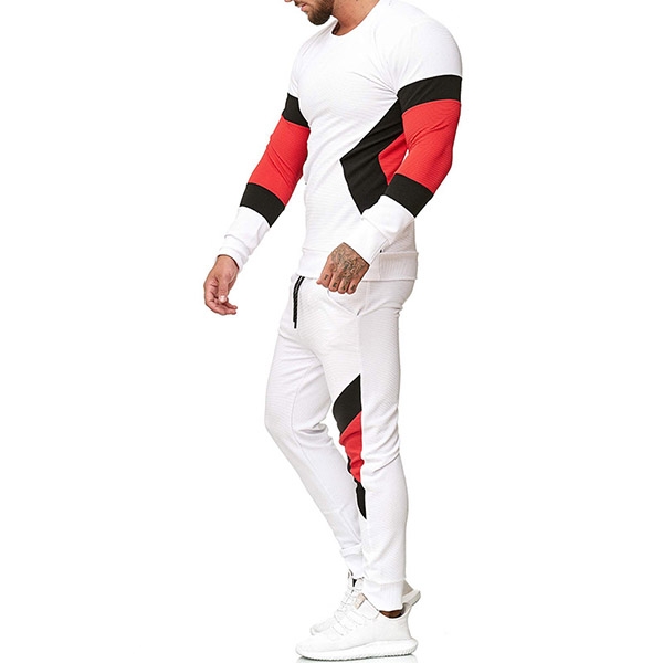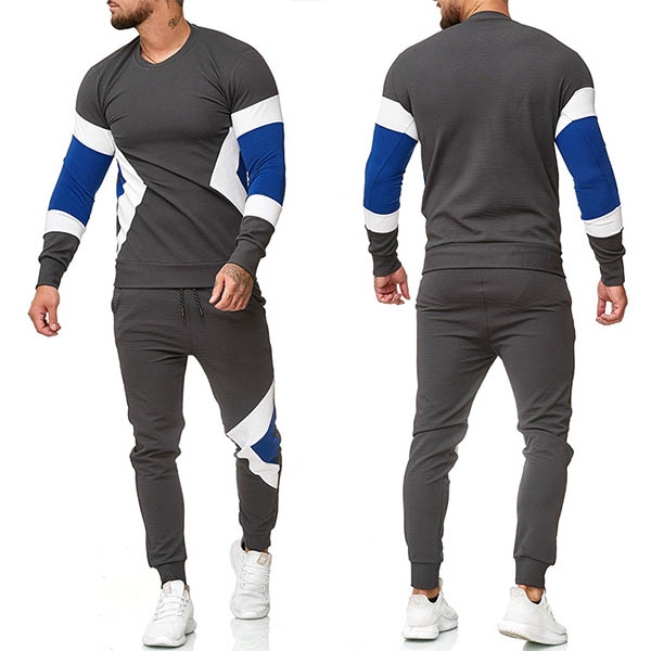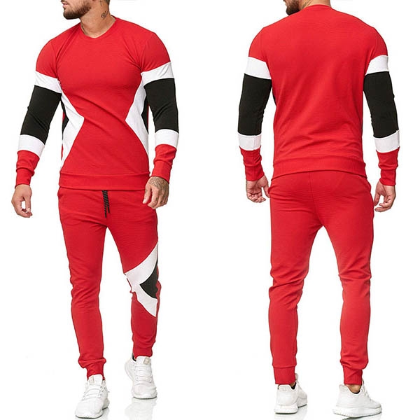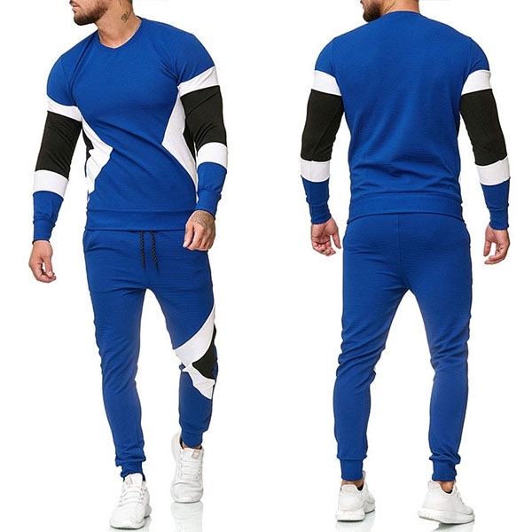 sports suit? Contrast color style,including a long sleeve round neck sweatshirt and a pants,