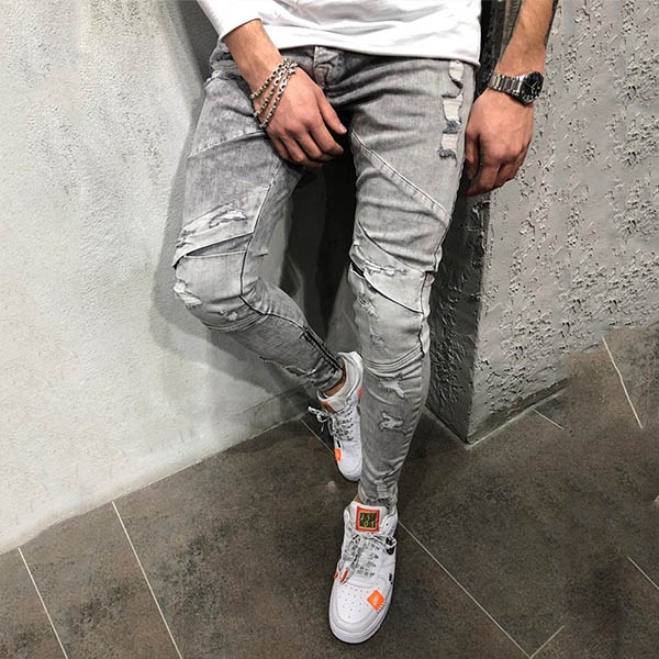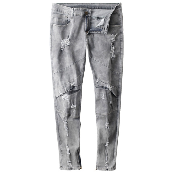 It is finished with middle-waist,a fit silhouette and ripped details,this jeans would be your