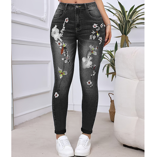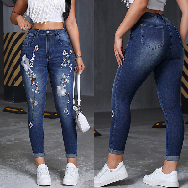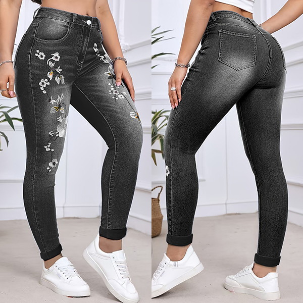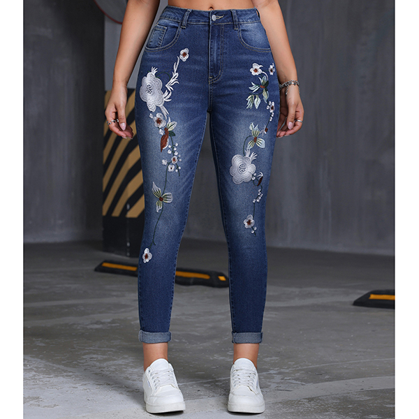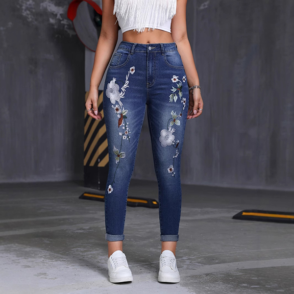 mbroidered High-Waisted Bootcut Jeans