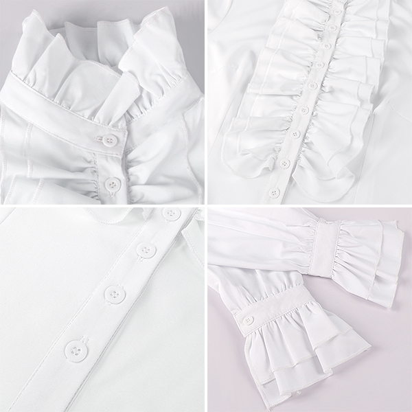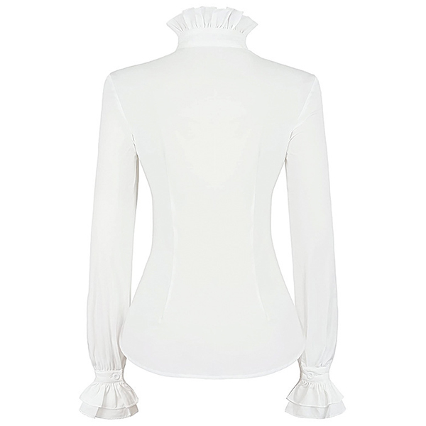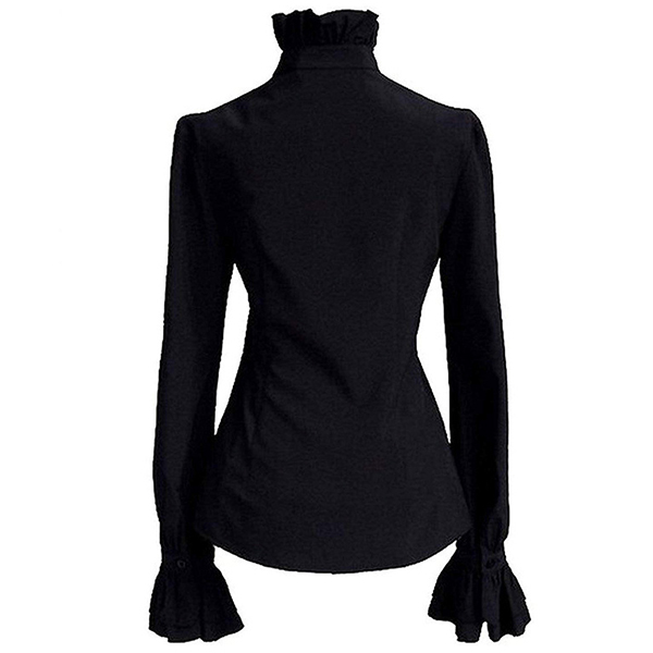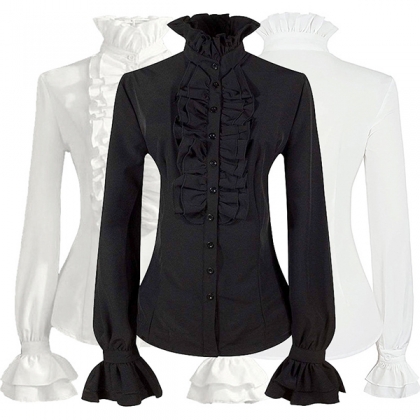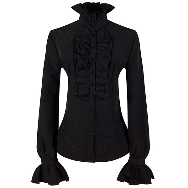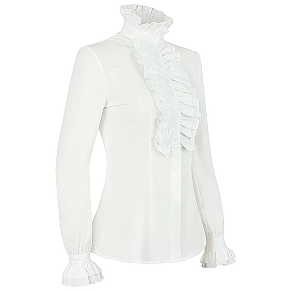 This women's shirt features beautiful ruffles that add a sophisticated touch, perfect for achieving a classic Victorian look with a modern twist.