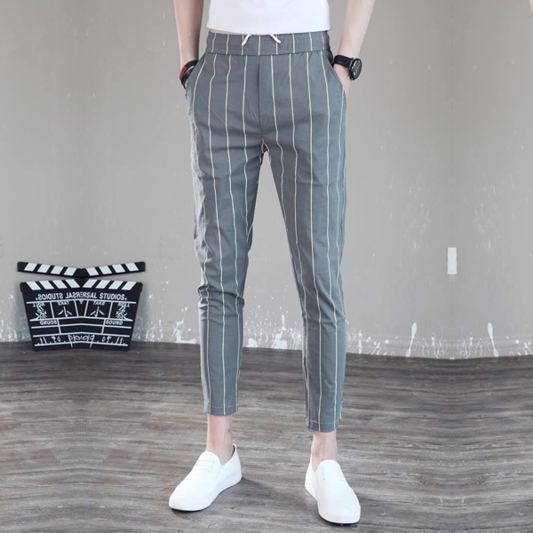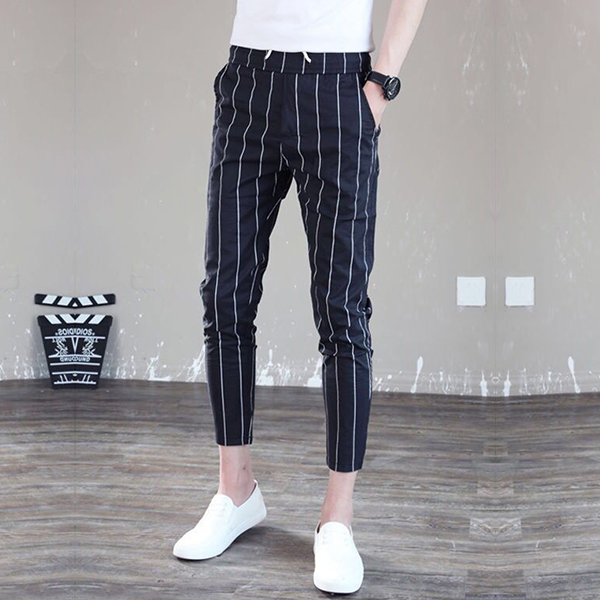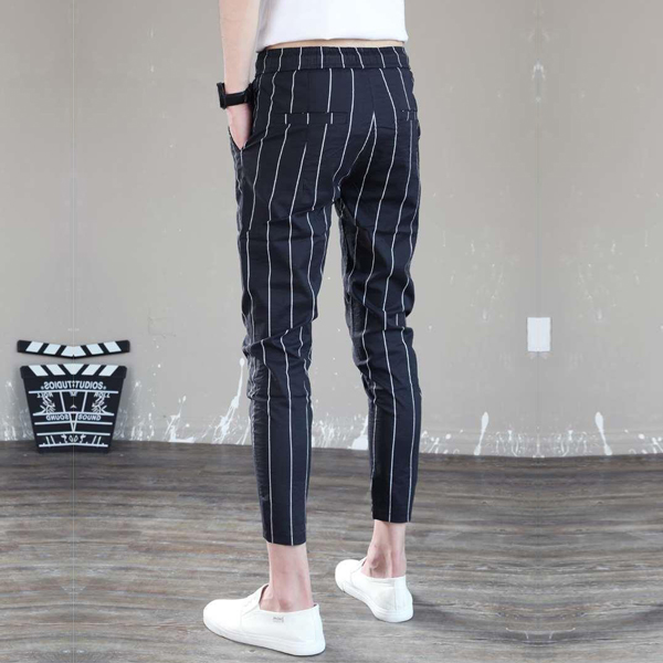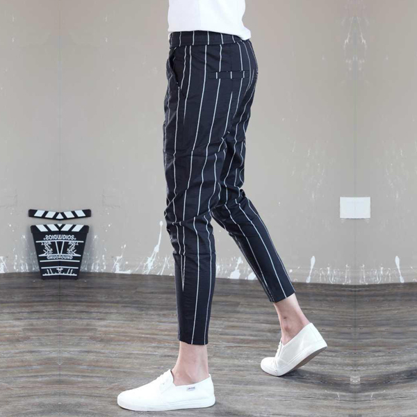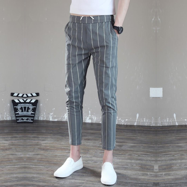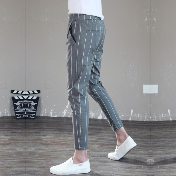 Men's Slim-Fit Striped Capri Pants: Lightweight, Elastic Casual Trousers
