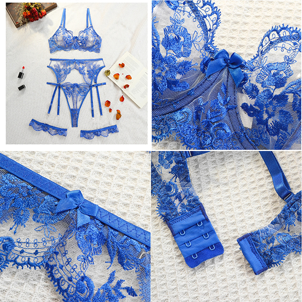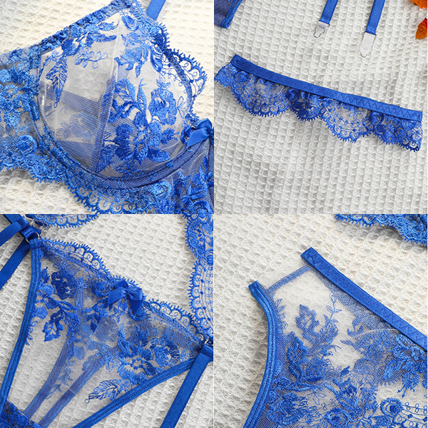 Mesh Embroidered Lingerie Set - Hollow Flower Design with Sheer Details