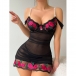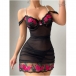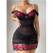 Sexy Sweetheart Neckline Open-shoulder Floral Embroidered Semi-through Nightwear Dress