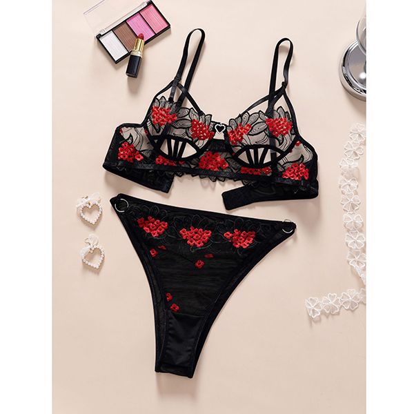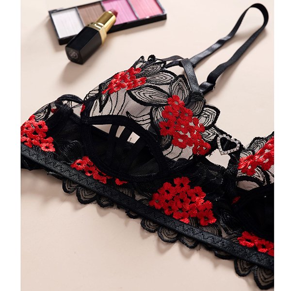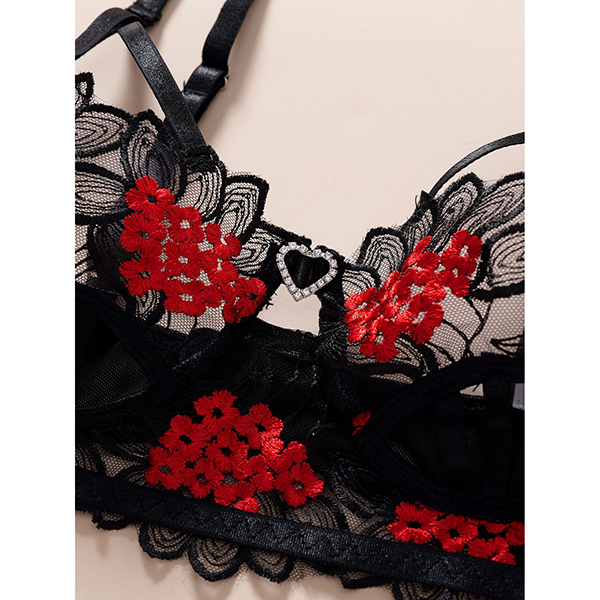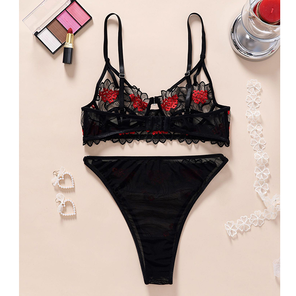 Mesh Embroidery See-Through Temptation Sexy Lingerie Set