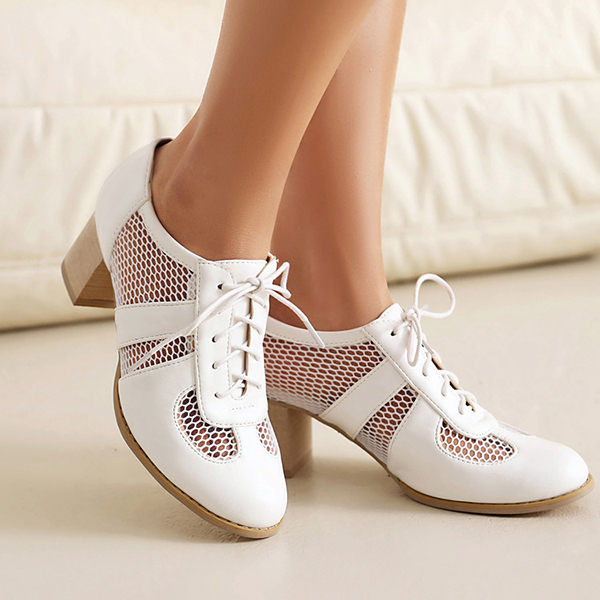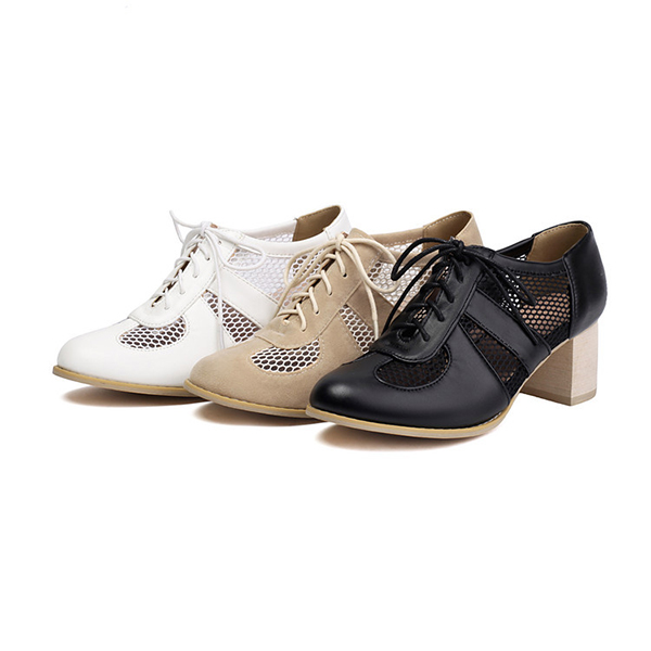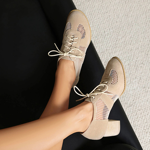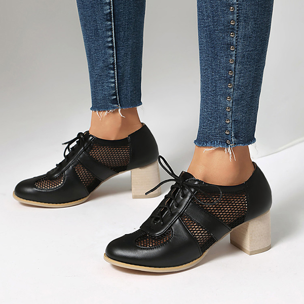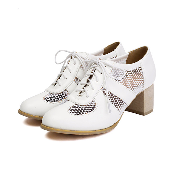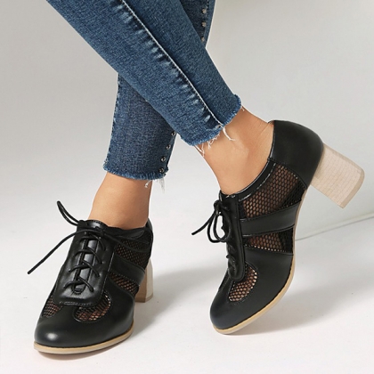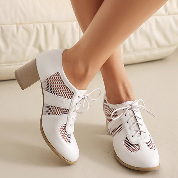 Mesh High Heel Shoes with Lace Up Design