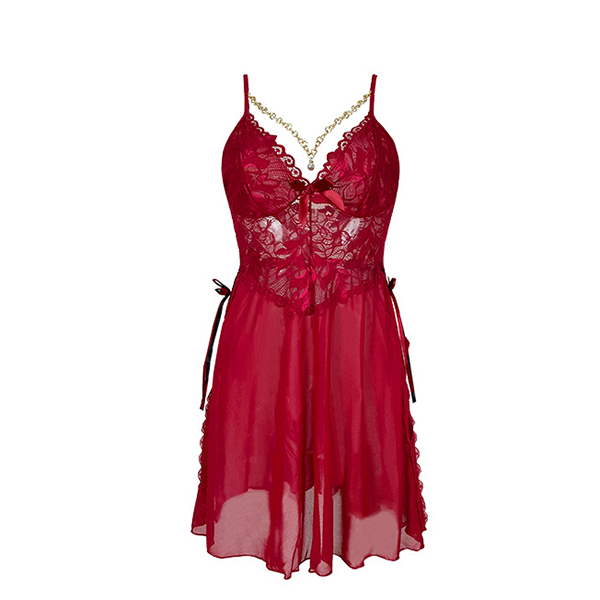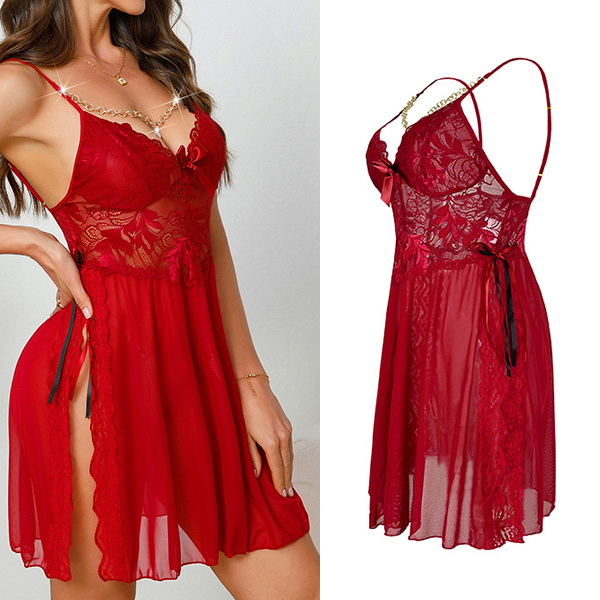 Mesh Slit Tempting Pajamas with Colorful Bow Decorations