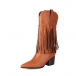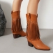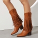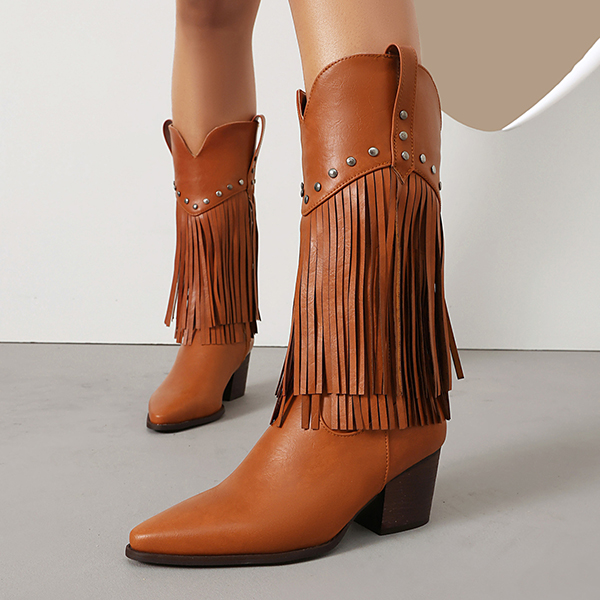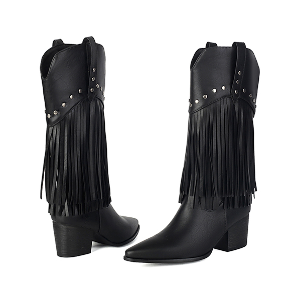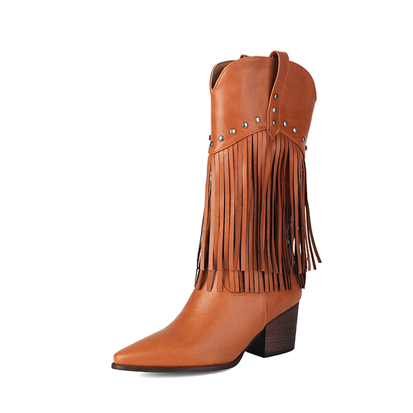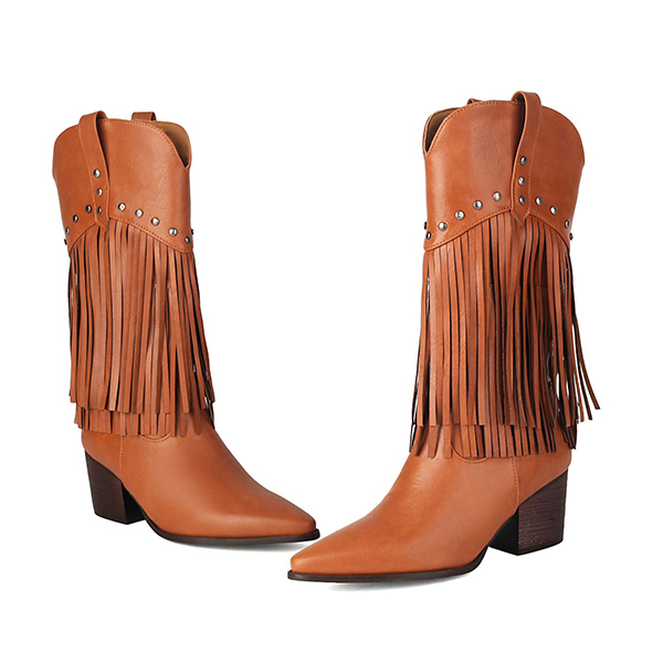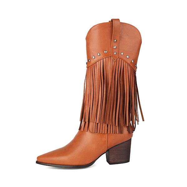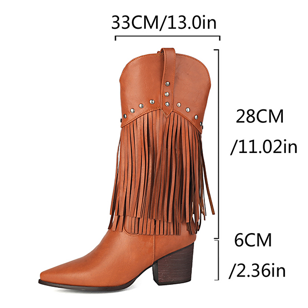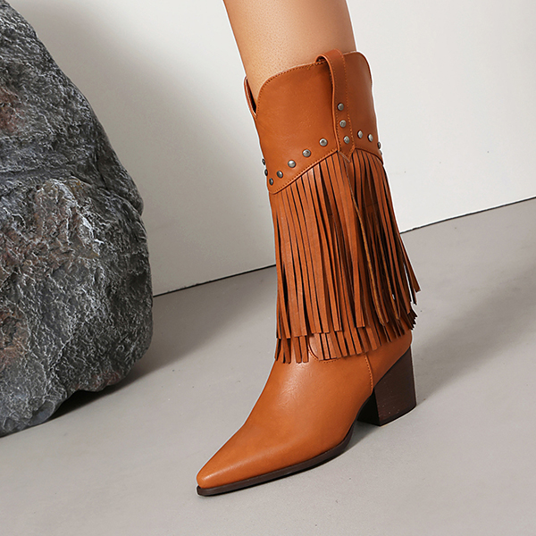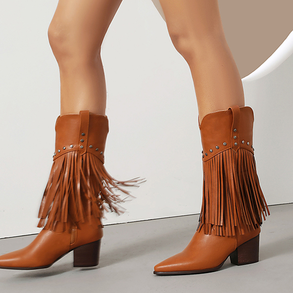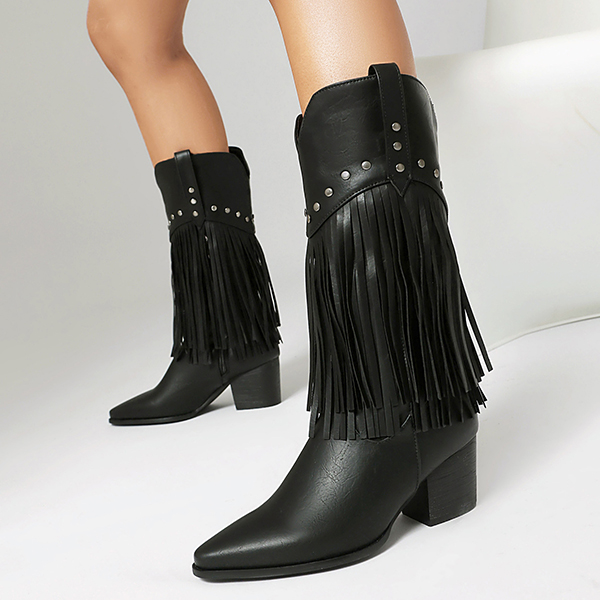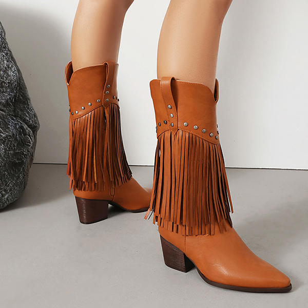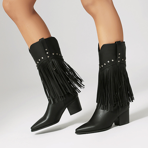 Mid-Calf Boots with Pointed Toe and PU Leather Tassel Details