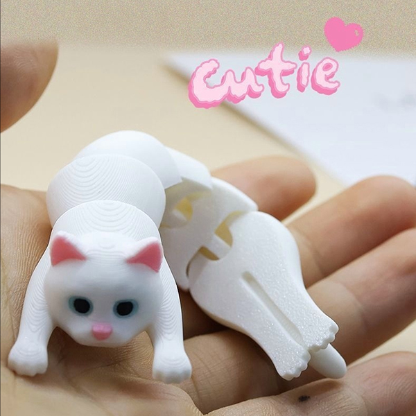 Mini Cute 3D Jointed Cat Figurine, White & Black Kitten Desktop Ornament, Poseable Palm-sized Healing Therapeutic Desk Decor, Stress Relief Kawaii Collectible for Home Office Gift