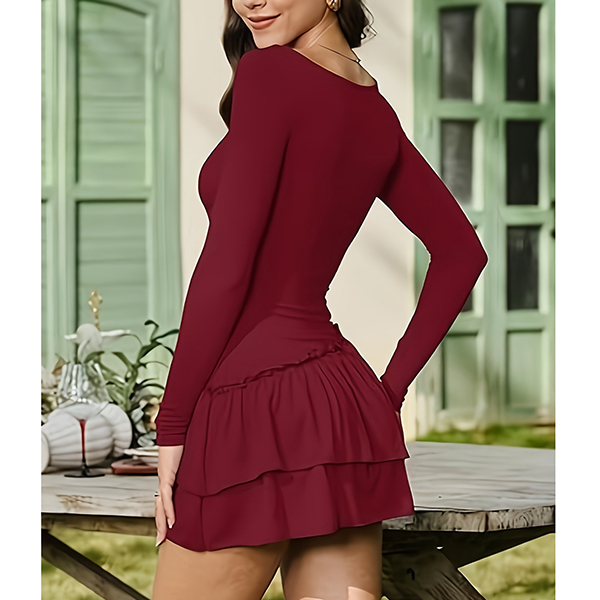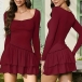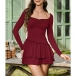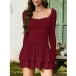 Fashion Square Neck Long Sleeve Ruffle Hemline Mini Dress