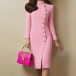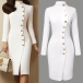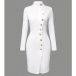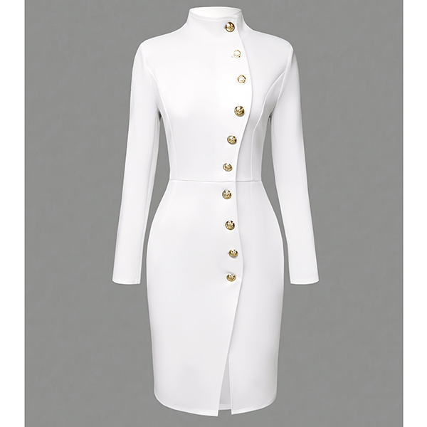Mini Length Dress with Stand Collar and Metal Buttons