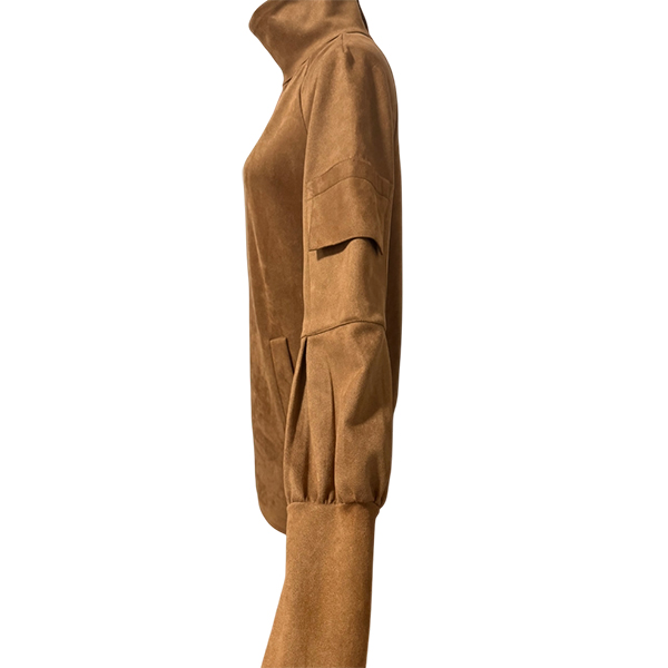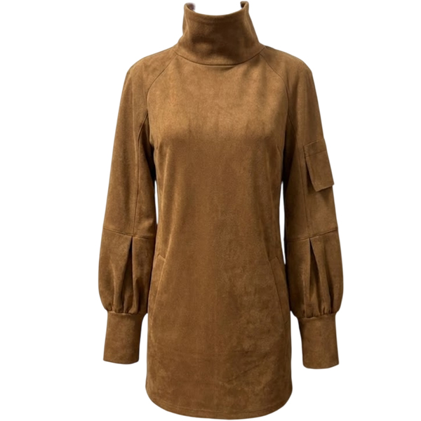 Mock Neck Long Sleeve Side Patch Pockets Mini Dress