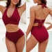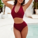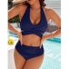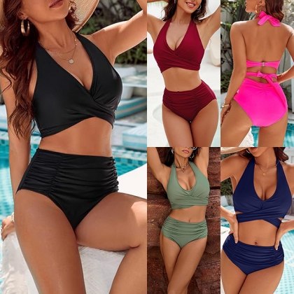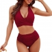 Modest High-Waist Bikini Set with Cute Halter Neck Design