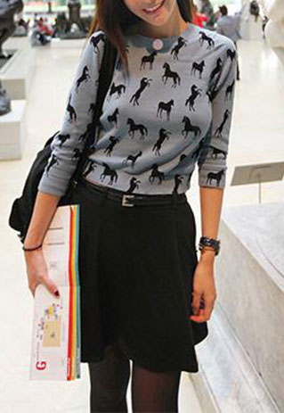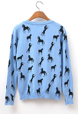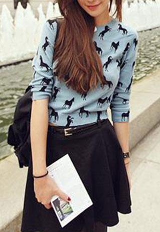 Reading is one of the best way to relax yourself in weekend. This time, you can choose our blue sweater to make you look more leisure. It is characterized by the horse pattern, chic and stylish. When you go into the library, all the readers will keep looking at you for your leisure style. Pair with a black skirt and a pair of booties, you will be the most fashion and leisure one in the library.
