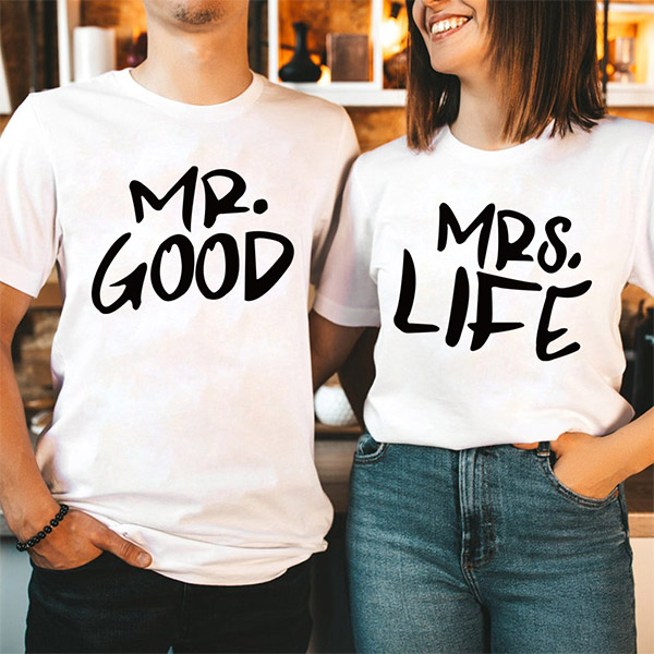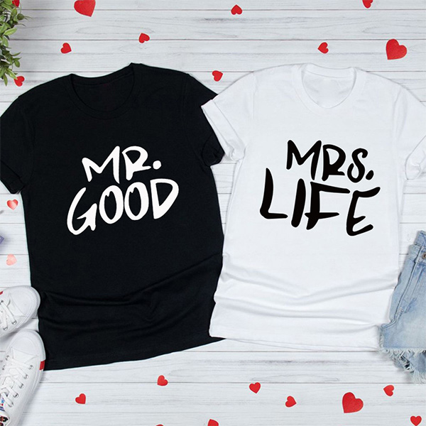 MR GOOD MRS LIFE-Letter Printed Shirt for Couple