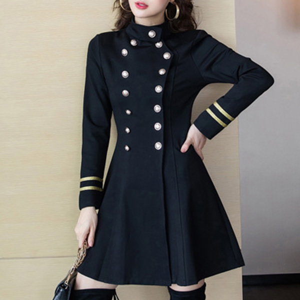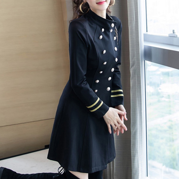 Navy Style Long Sleeve Stand Collar Double-breasted Slim Fit Dress