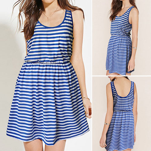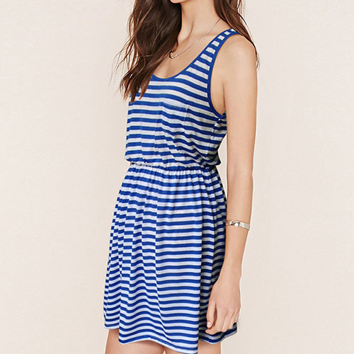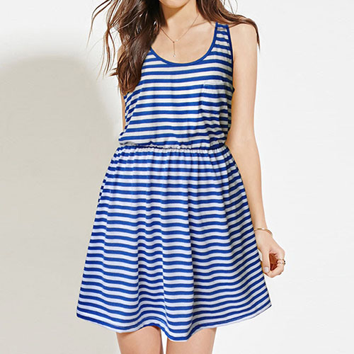 Striped style,crafted from soft and skin-friendly fabric,this dress can give you an all-day comfort.