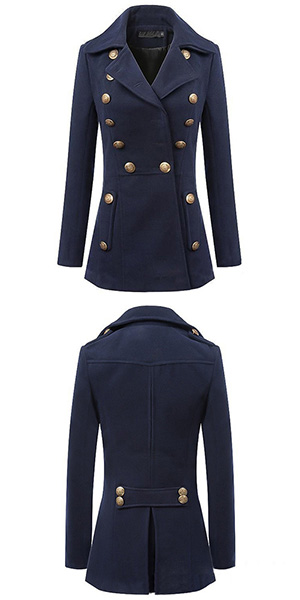 Chilly days is coming. You should leave a little space for this navy style woolen coat in your closet.