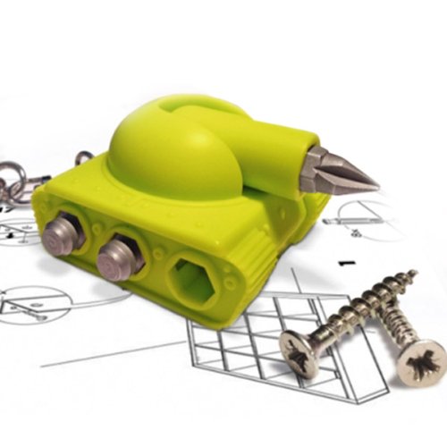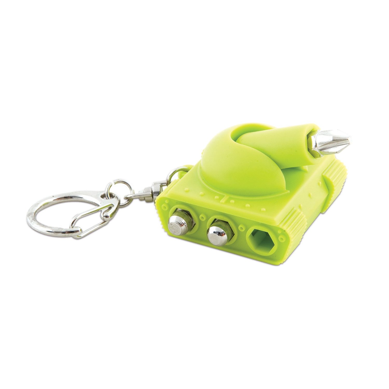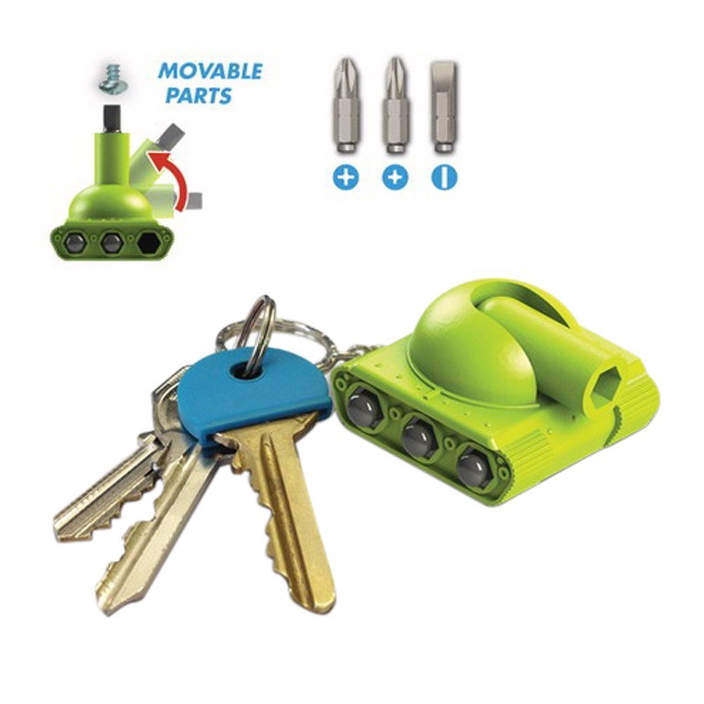 Stylish keychain looks like a tiny little tank. A combination of keychain, screwdriver and tank. We called it "Tool Tank". and Handy keychain multi-tool with a small Phillips screwdriver, a large Phillips screwdriver and a flat head screwdriver. Compact, convenient, versatile tool set with wire key loop to carry in pocket or bag. Use indoors or out, home or office. This could make a great gift.