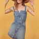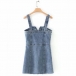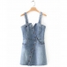 Oblique Button Denim Skirt with Wrapped Chest and Slim Suspender Straps