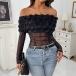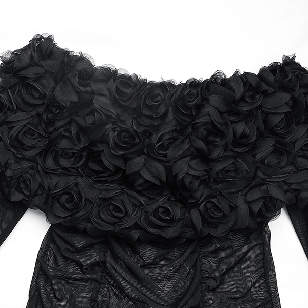 This Semi-sheer Bodysuit is a stunning and romantic piece that combines delicate floral embellishments with a modern and sexy design. The 3D floral detailing adds a whimsical and feminine touch to the bodysuit, creating a beautiful and intricate pattern that gives it a romantic and ethereal vibe. The off-the-shoulder neckline offers a flirty and alluring look, showcasing your shoulders and collarbones in a stylish and elegant way.The semi-sheer material creates a subtle and sophisticated look that is both chic and fashion-forward. he bodysuit silhouette is form-fitting and sleek, perfect for pairing with high-waisted bottoms or skirts for a stylish and streamlined outfit.