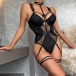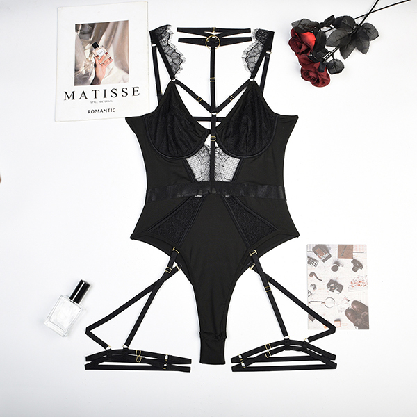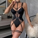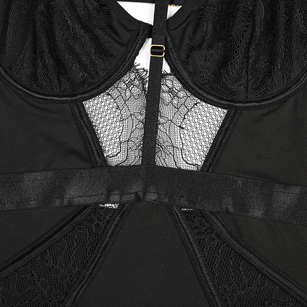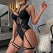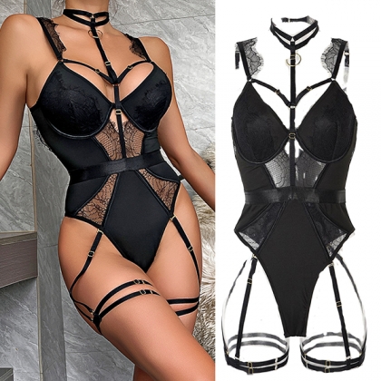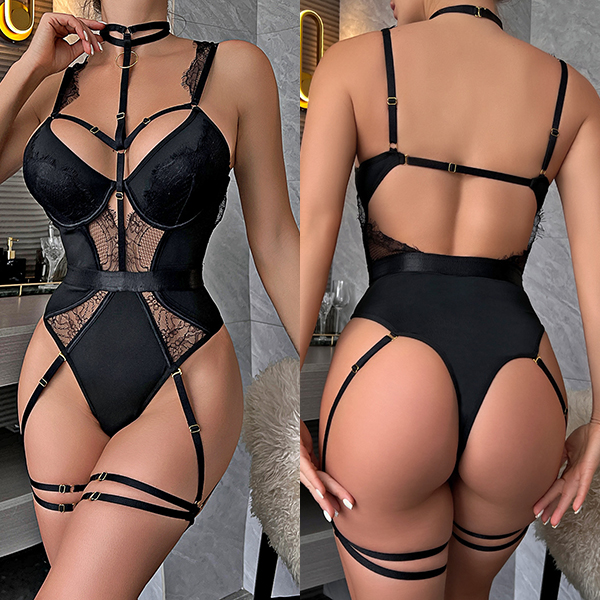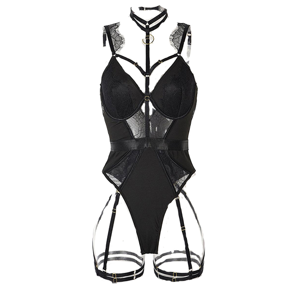 Off-Shoulder Halter Lace Bodysuit with Low-Cut and See-Through Design