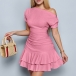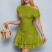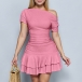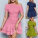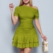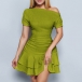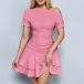 Fashion Slant Shoulder Short Sleeve Ruffle Hemline Mini Dress