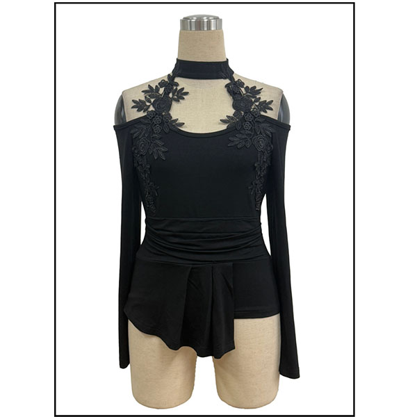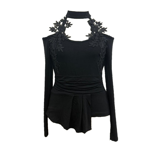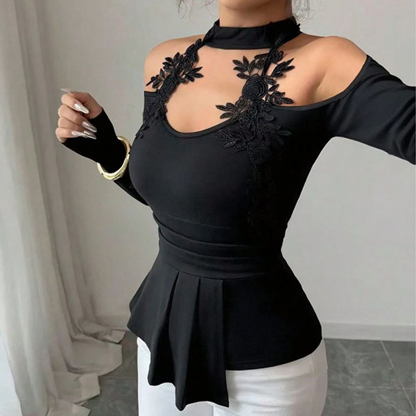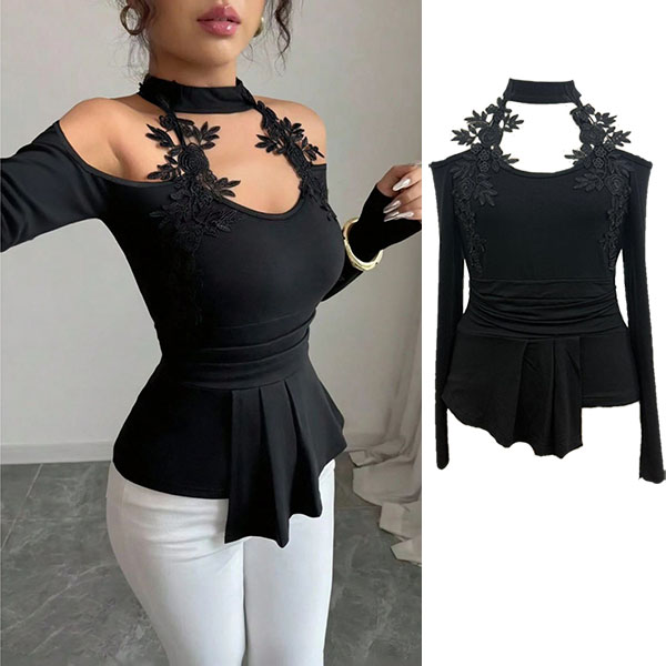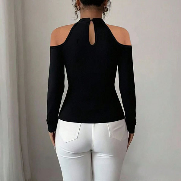 Off-Shoulder Top in Slim Fit with Cutout Detail and Pleated Curved Hem