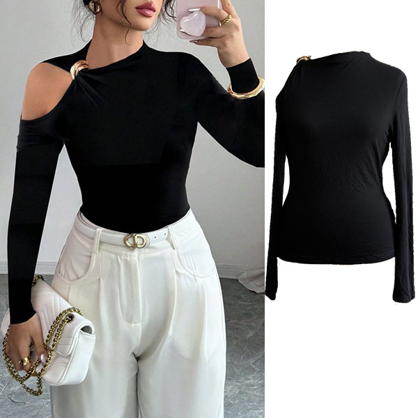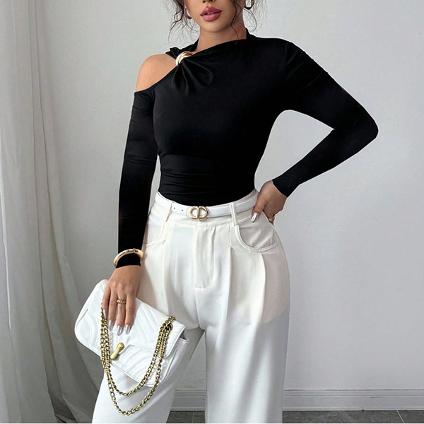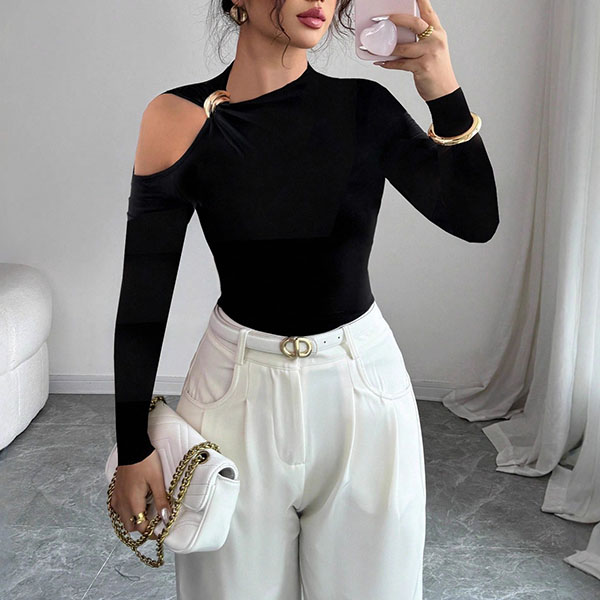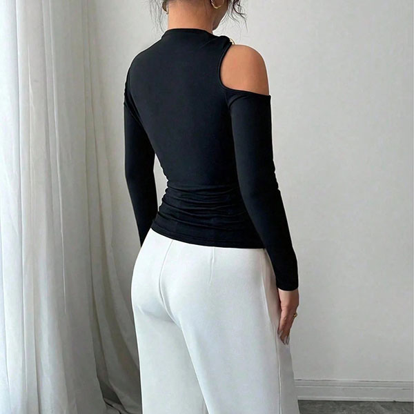 Fashion Irregular Neckline Open-shoulder Long Sleeve Shirt