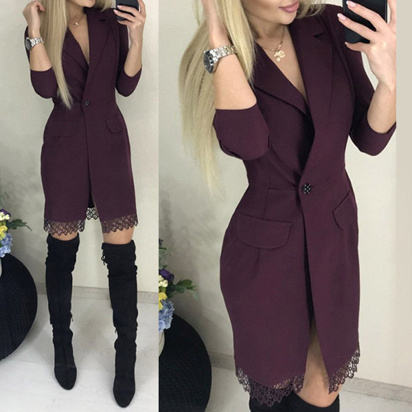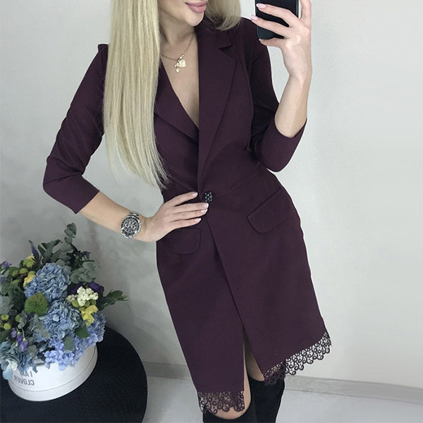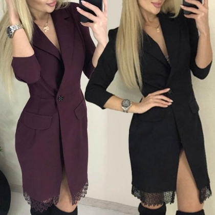 When stepping into your office with this delicate dress,you can easily arouse your colleagues' attention. Solid color style,finished with 3/4 sleeve,notched lapel and lace spliced hem,this dress knows how to exude your sexy and feminine side.