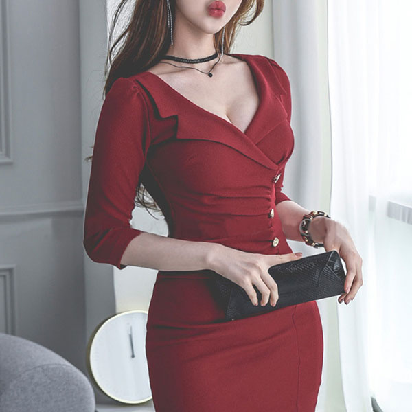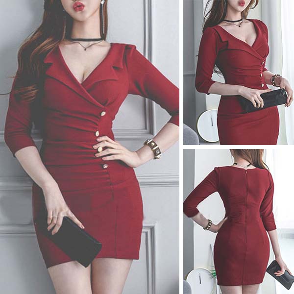 Want to make the maximum impact with minimal effort? Then slip into this stunning dress. Solid color style,finished with 3/4 sleeve,notched lapel and a fit silhouette,this dress not only can showcase your slender figure,but also can exude your sexy and feminine side.