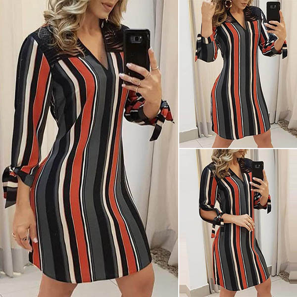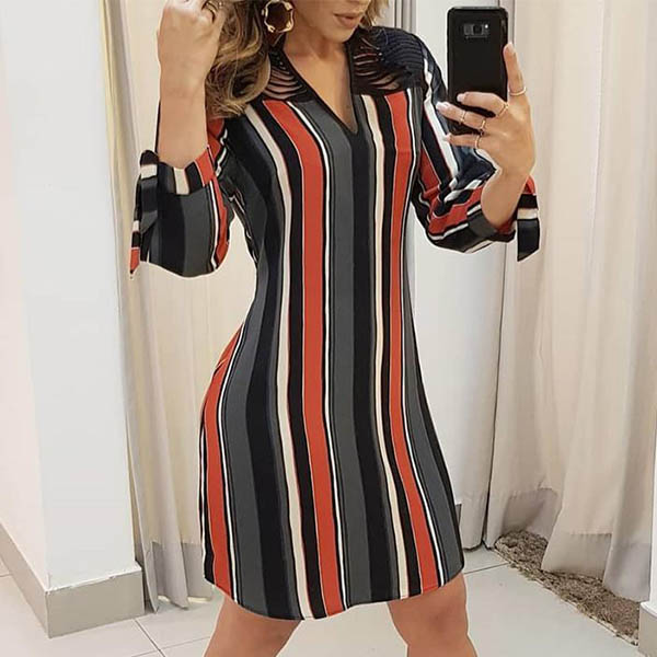 It is an easy thing to achieve for a delicate and stylish working look when you dress yourself up with this dress. The colorful stripe element design makes this piece look so stylish and popular,while the slit design at the sleeve part and hollow out details at front side will make this piece look more attractive. our dish? Then add it to your wardrobe?