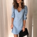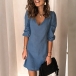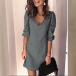 OL Style 3/4 Sleeve V-neck Solid Color Dress