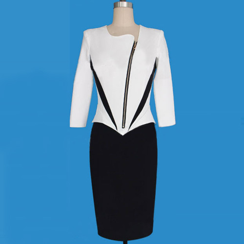 black and white,classical and stylish. Front with zipper design,looks so chic. Long sleeve and