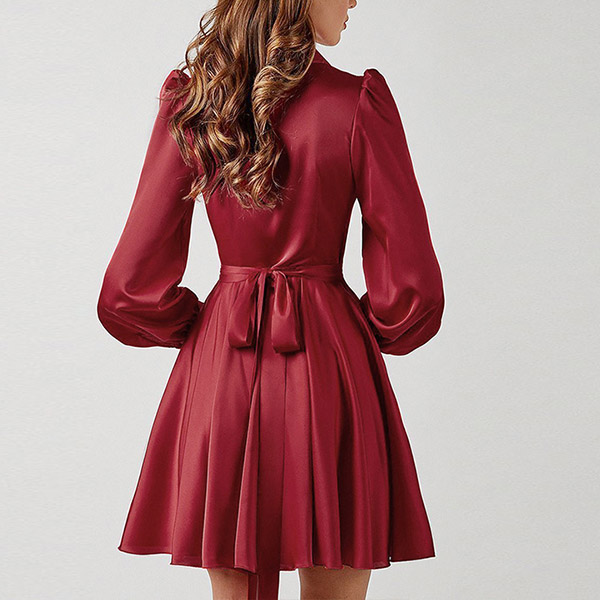Looking good is never hard for you if you have this delicate dress in your team. Solid color tone design makes it look elegant yet generous,while the lantern sleeve and v-neck design can exude your sassy,flirty yet feminine sense. For some fancy occasions,this dress can be your perfect weapon to express your beauty and charm.