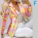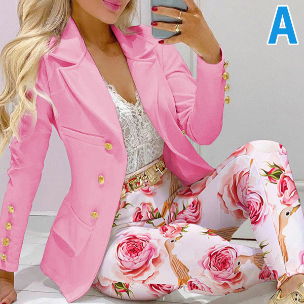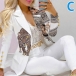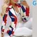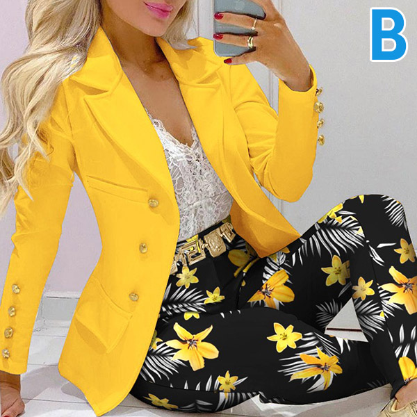 OL Style Long Sleeve Colorful Printed Blazer Coat + Pants Two-piece Set